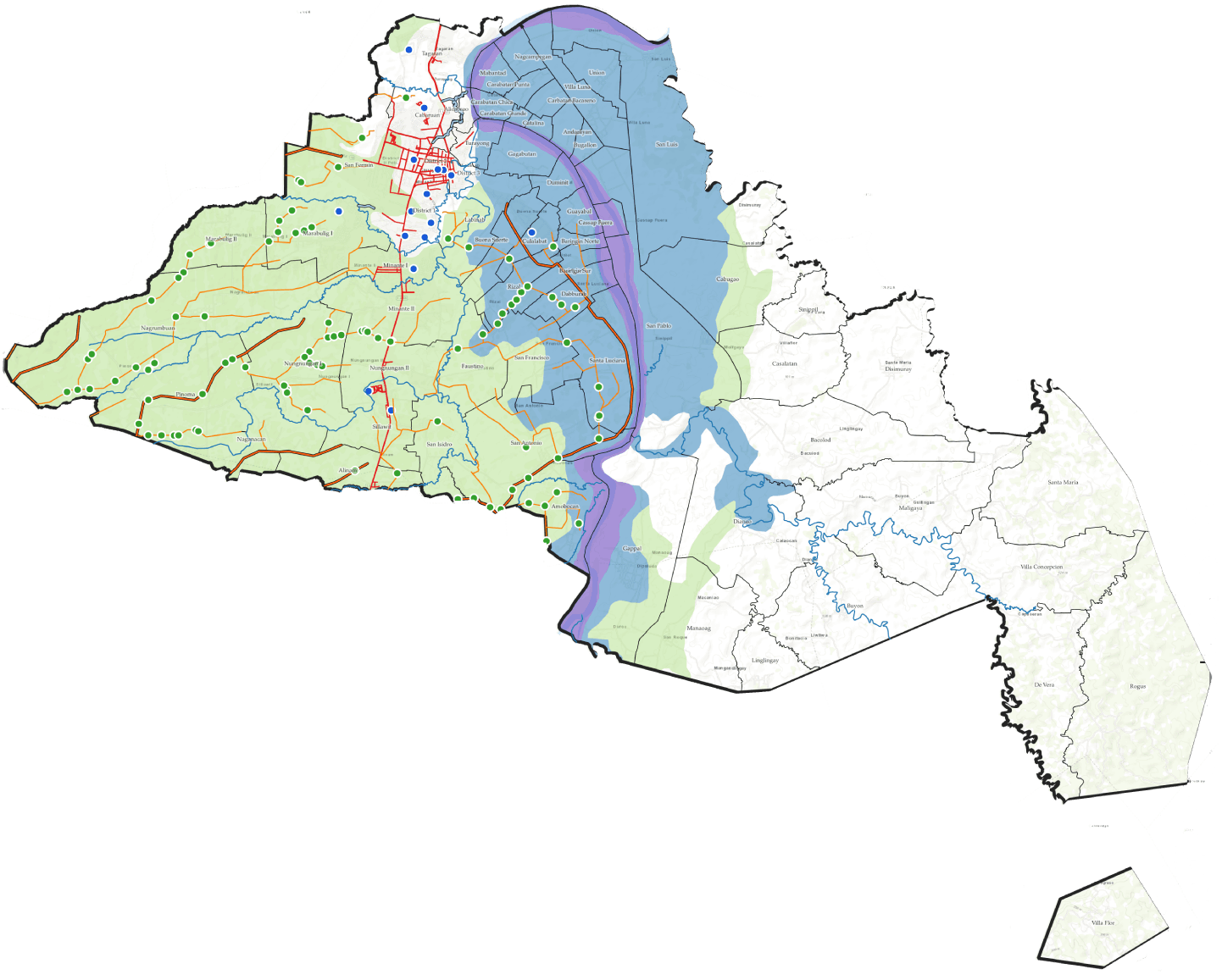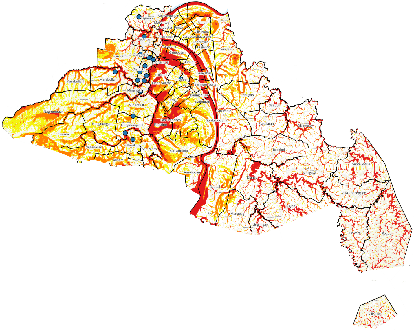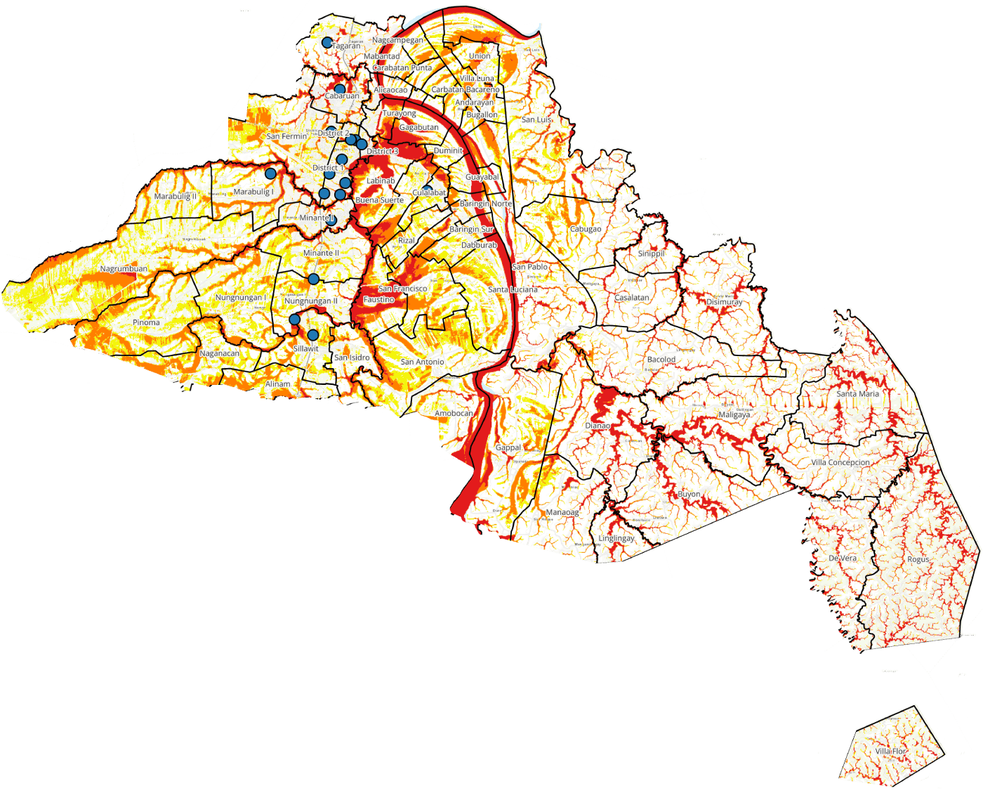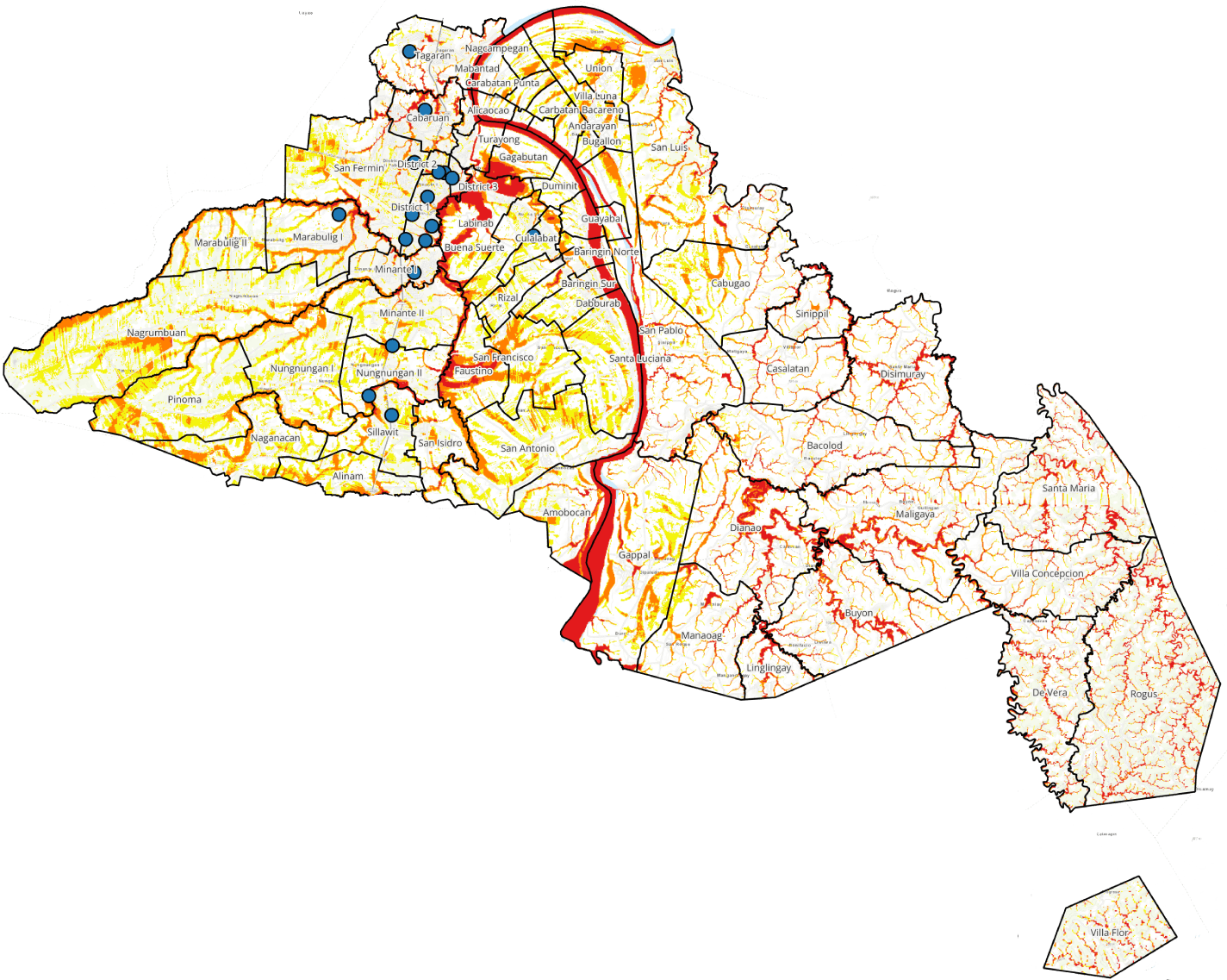 Flood Hazard Map Under 100-year Rain Return PeriodCauayan City. Isabela This shapefile, with a resolution of 10 meters, Illustrates the inundation extents in the area if the actual amount of rain exceeds that of a 100 year-rain return period. There is a 1/100(1%) propability of a flood with 100 year return period occuring in a single year. |